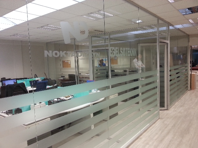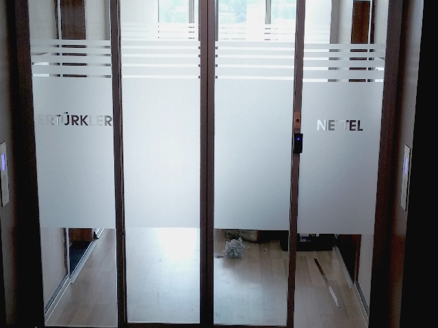 kurumsal bir görüntü sunar. Kumlama yapılmış cam görüntülü bu cam filmleri dik ,yatay veya özel